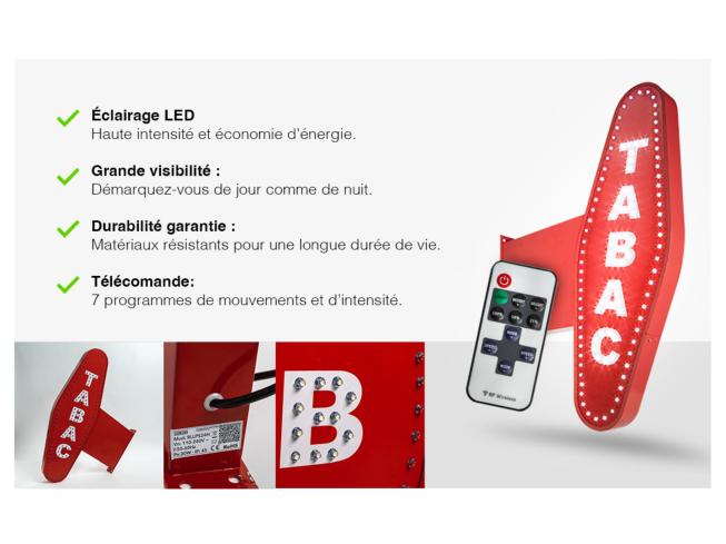 ENSEIGNE DRAPEAU TABAC LED CAROTTE CLIGNOTANTE