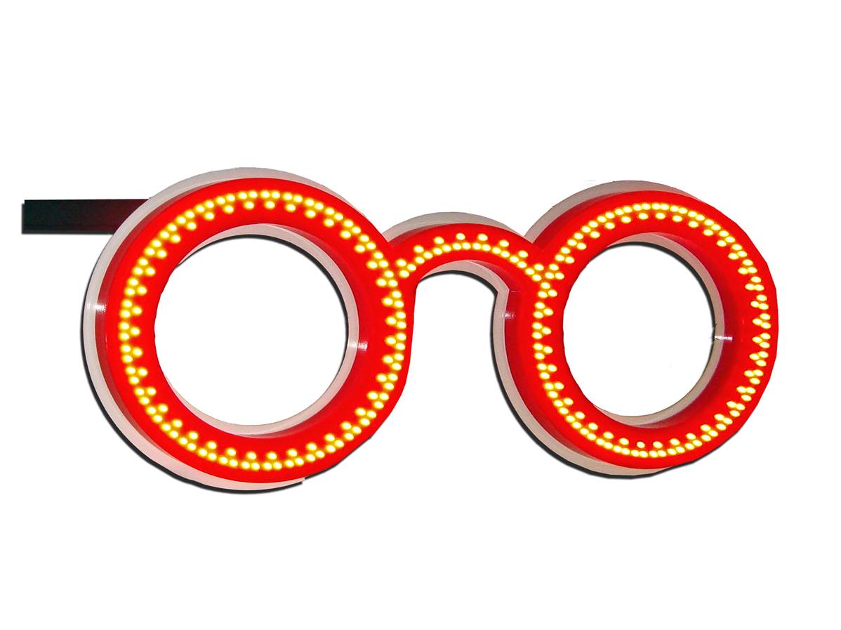 Cette enseigne Led en forme de lunettes se fixe en drapeau sur la façade de votre magasin d'optique. Cette enseigne double face vous permettra de donner une belle visibilité à votre devanture.
